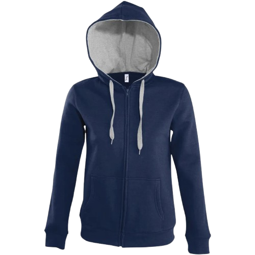 Veste zippée à capuche, molleton gratté 260g/m². 50% coton 50% polyester. Grammage : 260g/m²