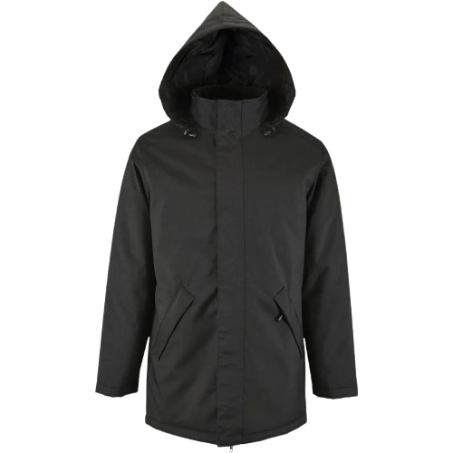 Parka unisexe à doublure matelassé. Ouverture zippée double curseur avec patte auto-agrippante et pressions invisibles. Capuche sous col. Col intérieur doublé polaire. 2 poches extérieures zippées avec rabat. 1 poche intérieure. Patte de resserrage poignets. 100% polyester. Enduction PVC. Doublure 100% polyester. Matelassage 100% polyester 170 g/m².